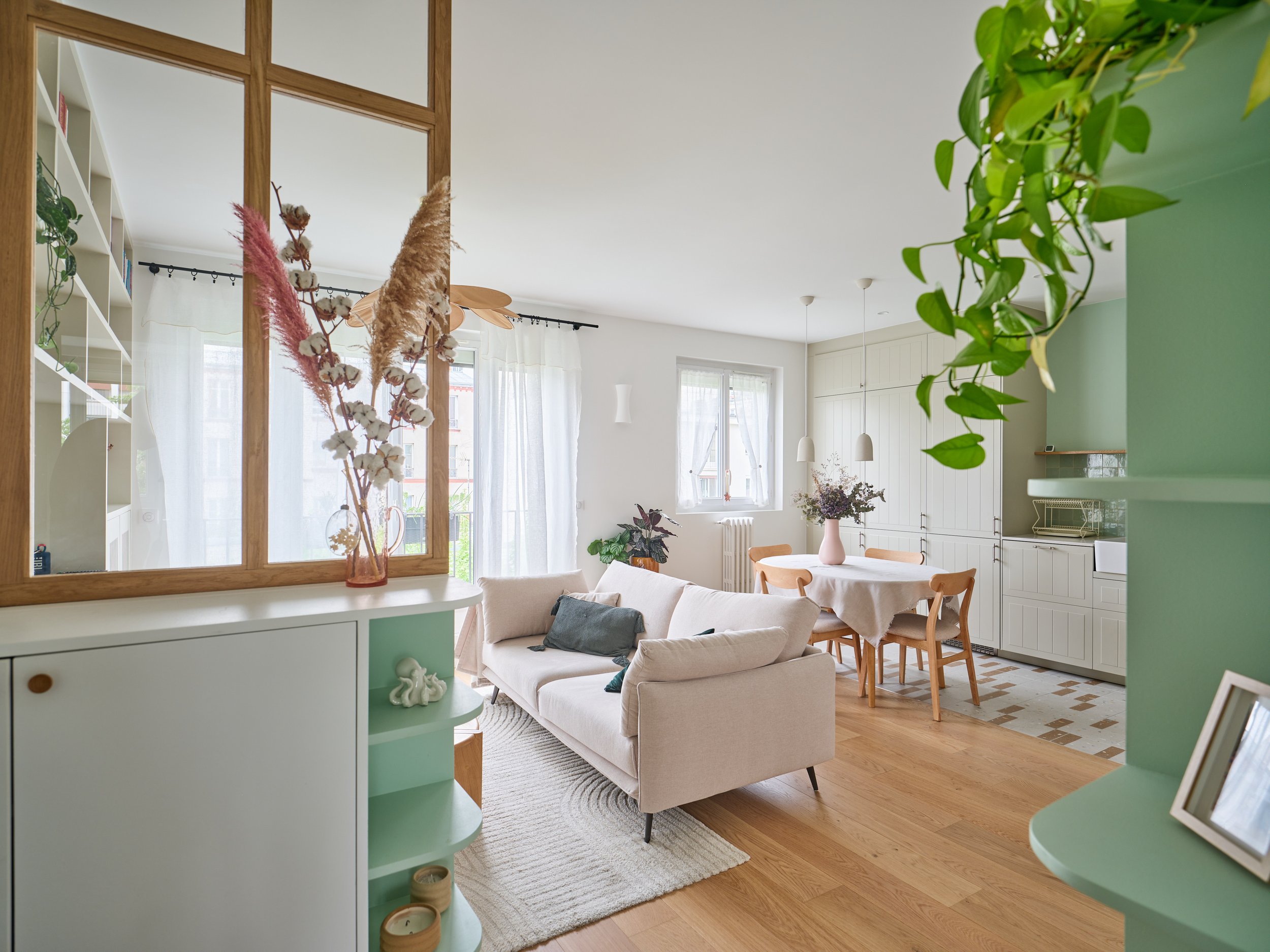 La rénovation de cet appartement a été guidée par une exigence absolue dans le choix des matériaux, avec l'ambition de rafraîchir et de magnifier un héritage des années 70. L'enjeu était de rompre avec les codes de l'époque pour offrir à cet espace une nouvelle identité, à la fois moderne et intemporelle.